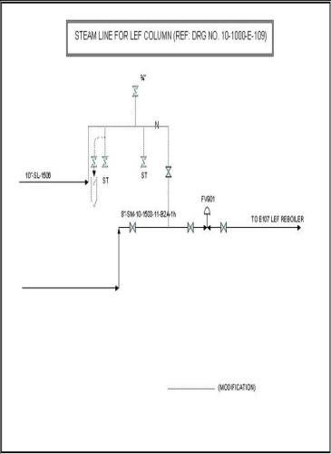 LP steam line connection has been provided in LEF reboiler as an additional facility over MP steam connection for operational flexibility in case of any problem in MP steam supply. The modification diagram is placed at sl no 8.
