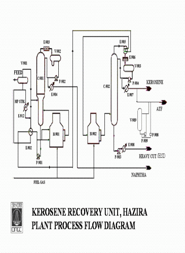 The NGL produced from CFUs contains appreciable amount of Kerosene (about 12 - 16 %) and Aromatics. The NGL produced from LPG does not contain Kerosene and it is equivalent to Aromatic Rich Naphtha. The "Kerosene Recovery Unit" was designed to extract the value added products from NGL produced from the CFUs.