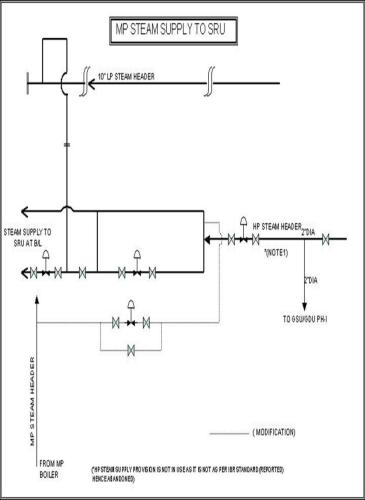 MP steam supply to SRU – Provision for supply of steam to SRU from MP steam Header has been made in case LP steam from LP steam header is not available. Schematic is at sl no 19.